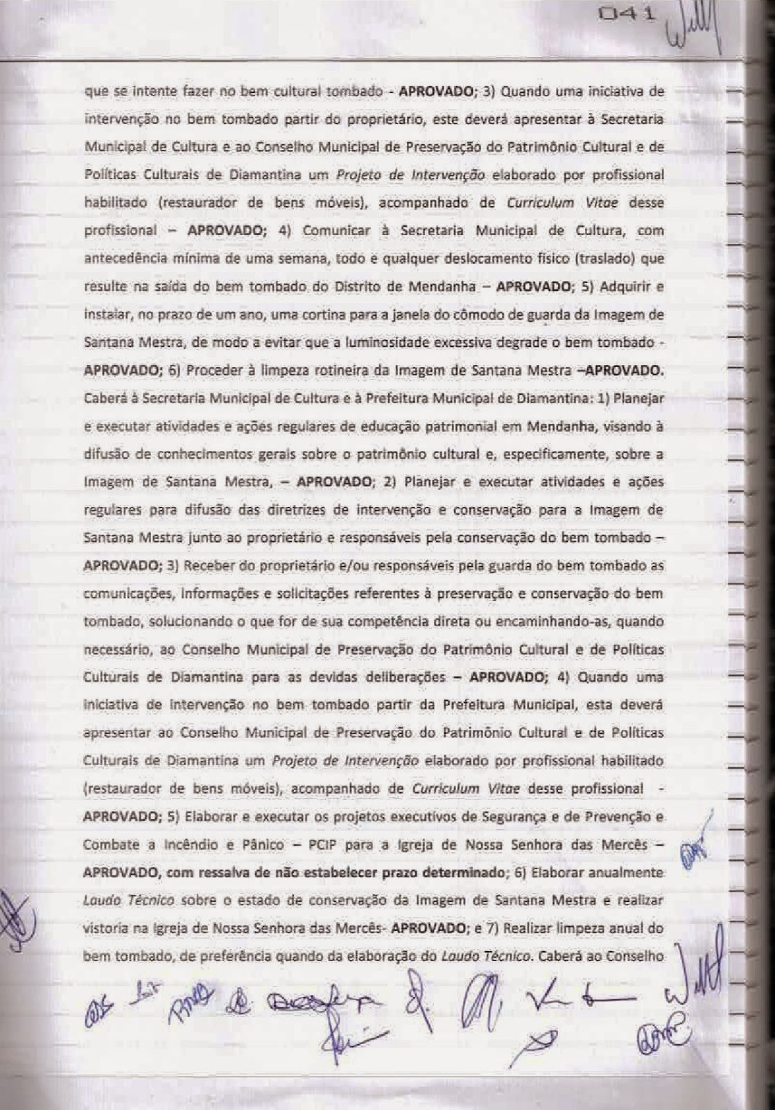 Atas do Conselho Municipal de Preservação do Patrimônio Cultural e Políticas Culturais de Diamantina.